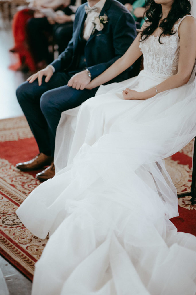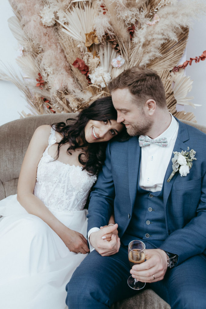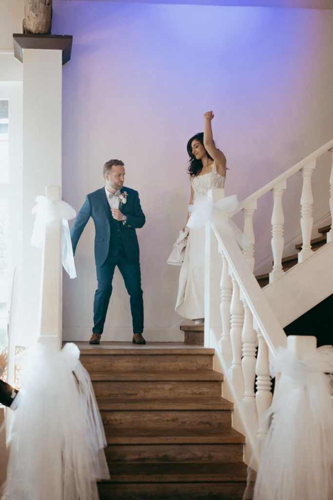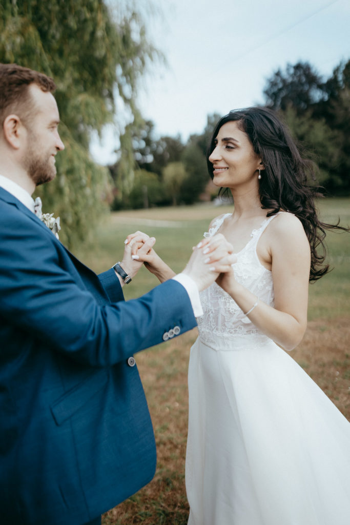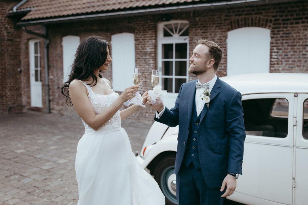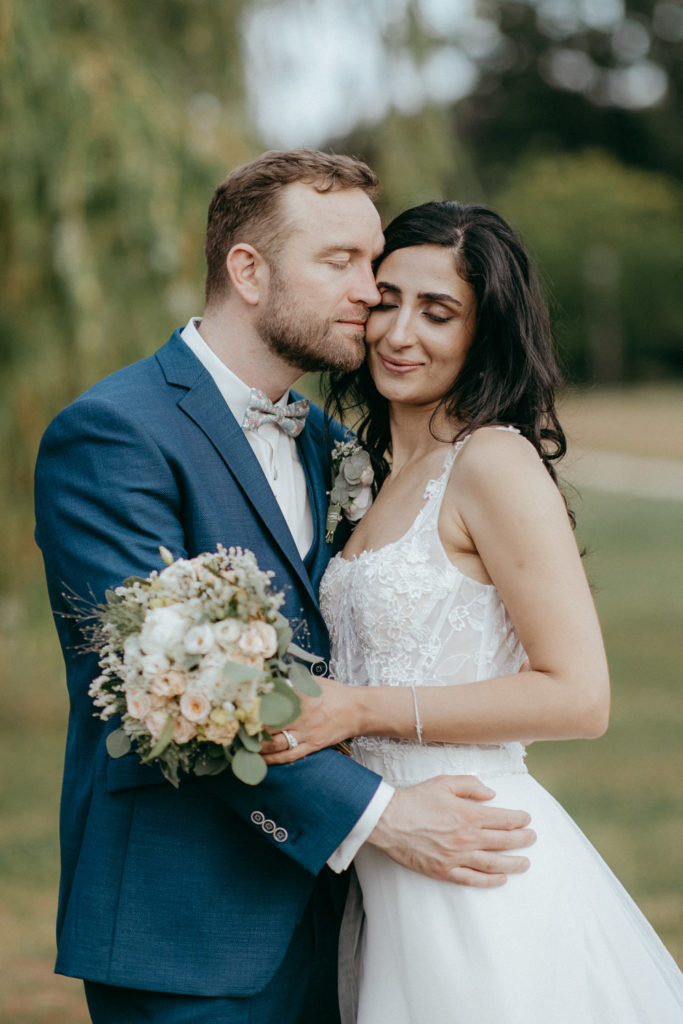 Joëlle est libanaise, Jean-Sébastien français, ils vivent au Canada et ont décidé de se dire oui en France, dans le Nord, région d’origine de Jean-Sébastien. Ils se sont dit oui religieusement en la très jolie église St Martin de Roubaix puis ont donné RDV à leurs convives au domaine d’Achelles pour une réception intimiste et très conviviale !